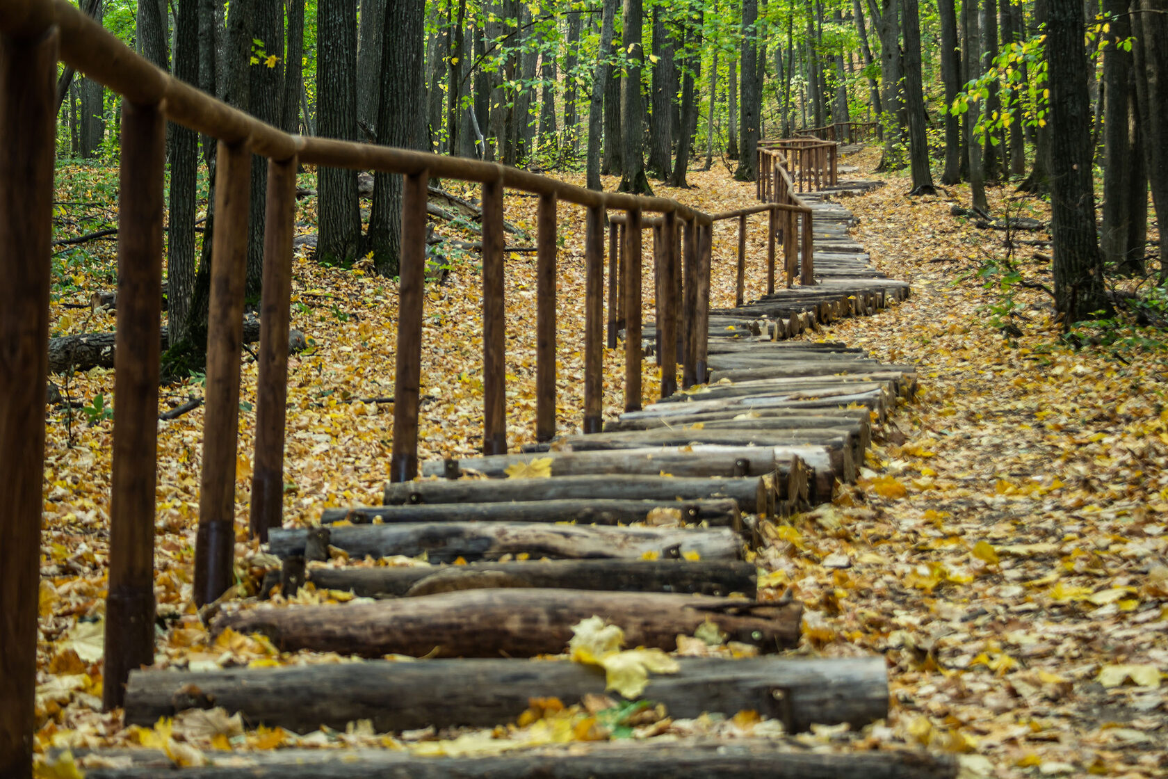 Инфраструктурные решения были разработаны с учётом эстетики тропы, которая проходит по густому лесу с высокими деревьями. Важно было крайне бережно внедрять благоустройство, чтобы оставить лес диким, а тропу сделать его естественным продолжением — неотъемлемой частью храма природы. Поэтому в дизайн-коде мы использовали много дерева.