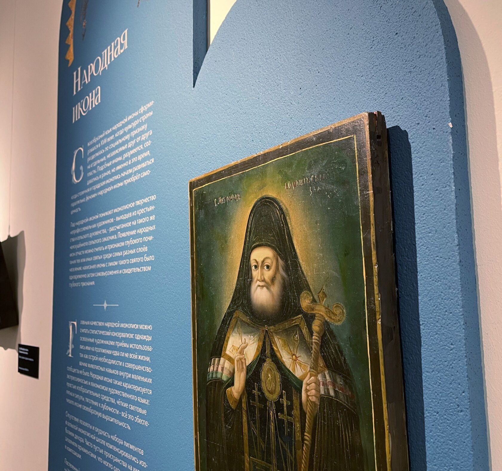 Отдельное место заняла так называемая «народная икона». Также с помощью научных консультантов мы объяснили принципы, по которым строится иконописное изображение, а святые объединяются на иконах в пары и тройки. Таким образом мы стремились сделать выставку интересной для широкого круга аудитории — не только православных христиан, но и тех, кто просто ходит на выставки в музей.